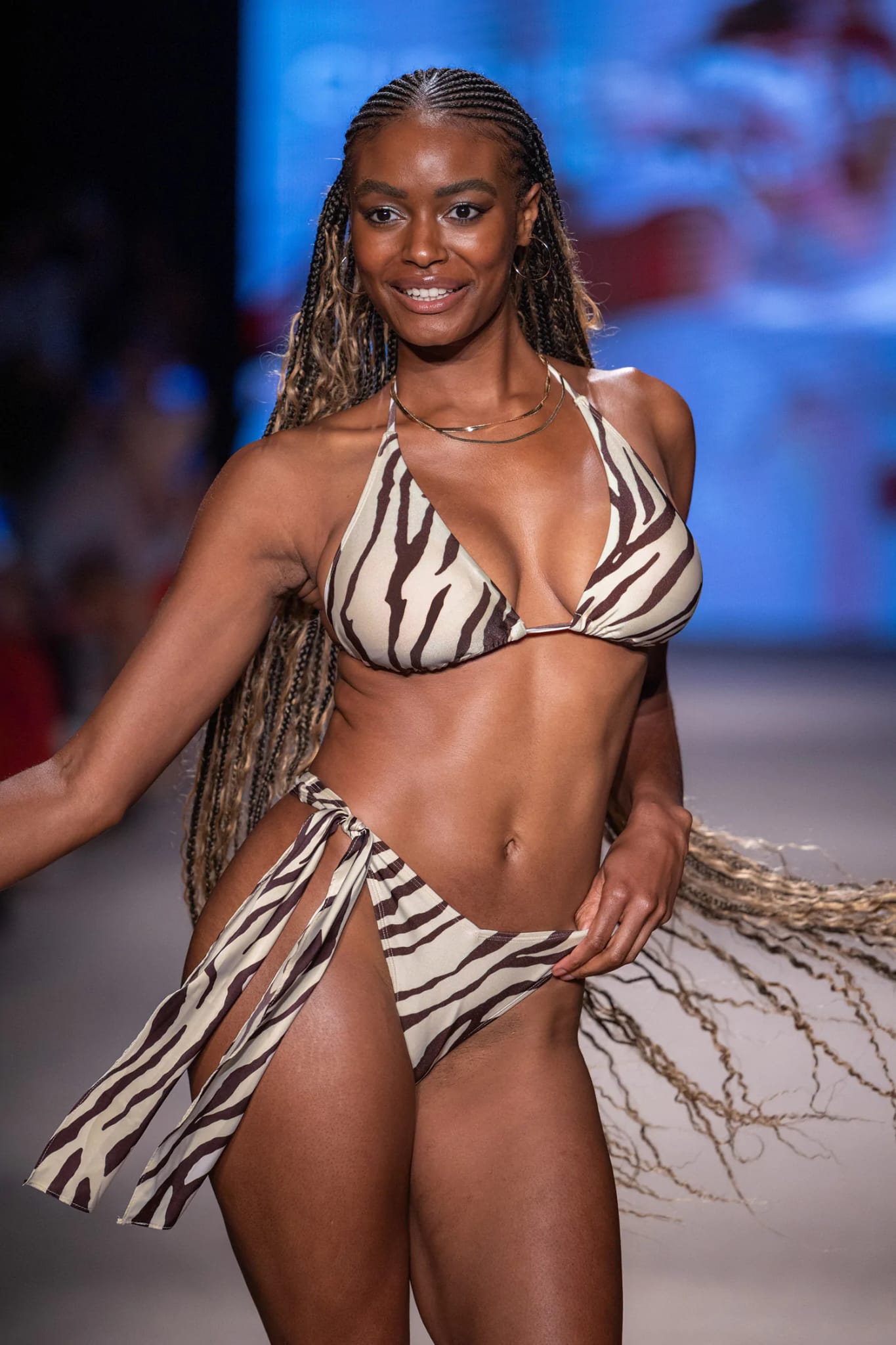 Relájese en el abrazo de la naturaleza con nuestro conjunto de bikini triangular Saddleback y braguita ultra atrevida. Abrace la tranquilidad con su diseño con estampado animal y estilo halter, que lo invita a relajarse y disfrutar de la serenidad de su entorno.