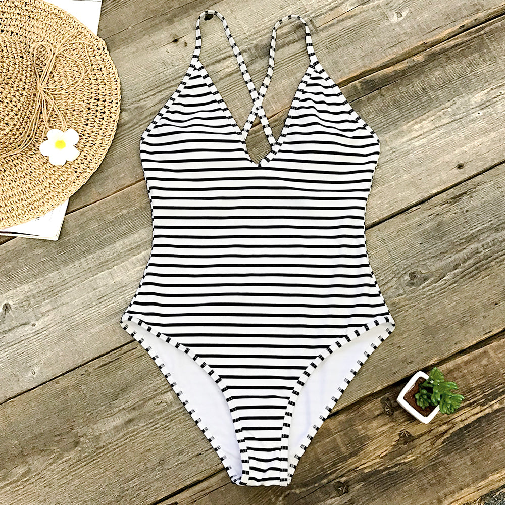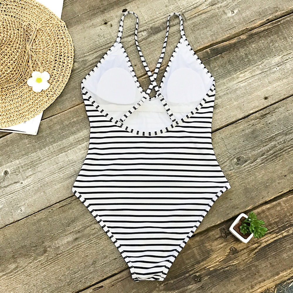 Bañador a Rayas con Espalda Cruzada - Una Pieza