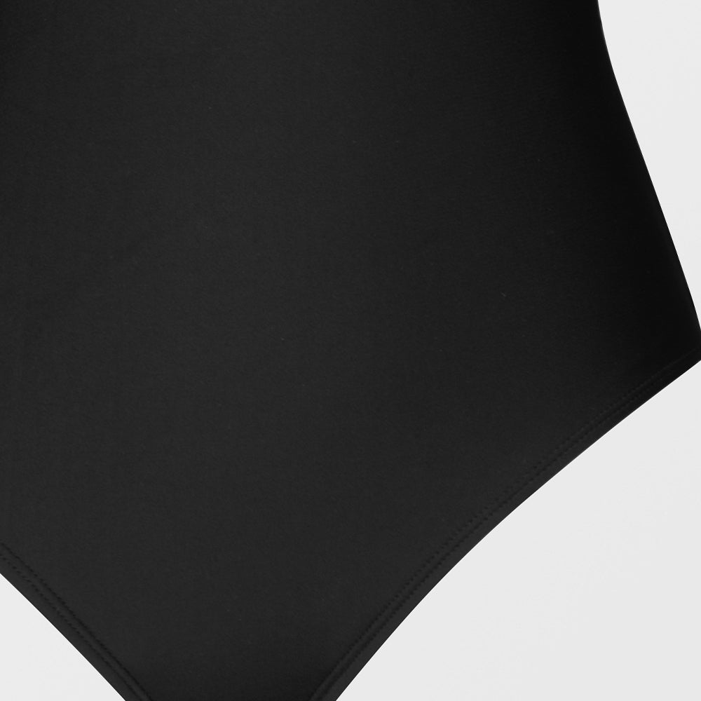 Mira la puesta de sol con este traje de baño de una pieza que presenta un color negro completo por toda la prenda, escote recto, cintura fruncida para un efecto favorecedor, tirantes de cami ajustables y cobertura clásica en el trasero.