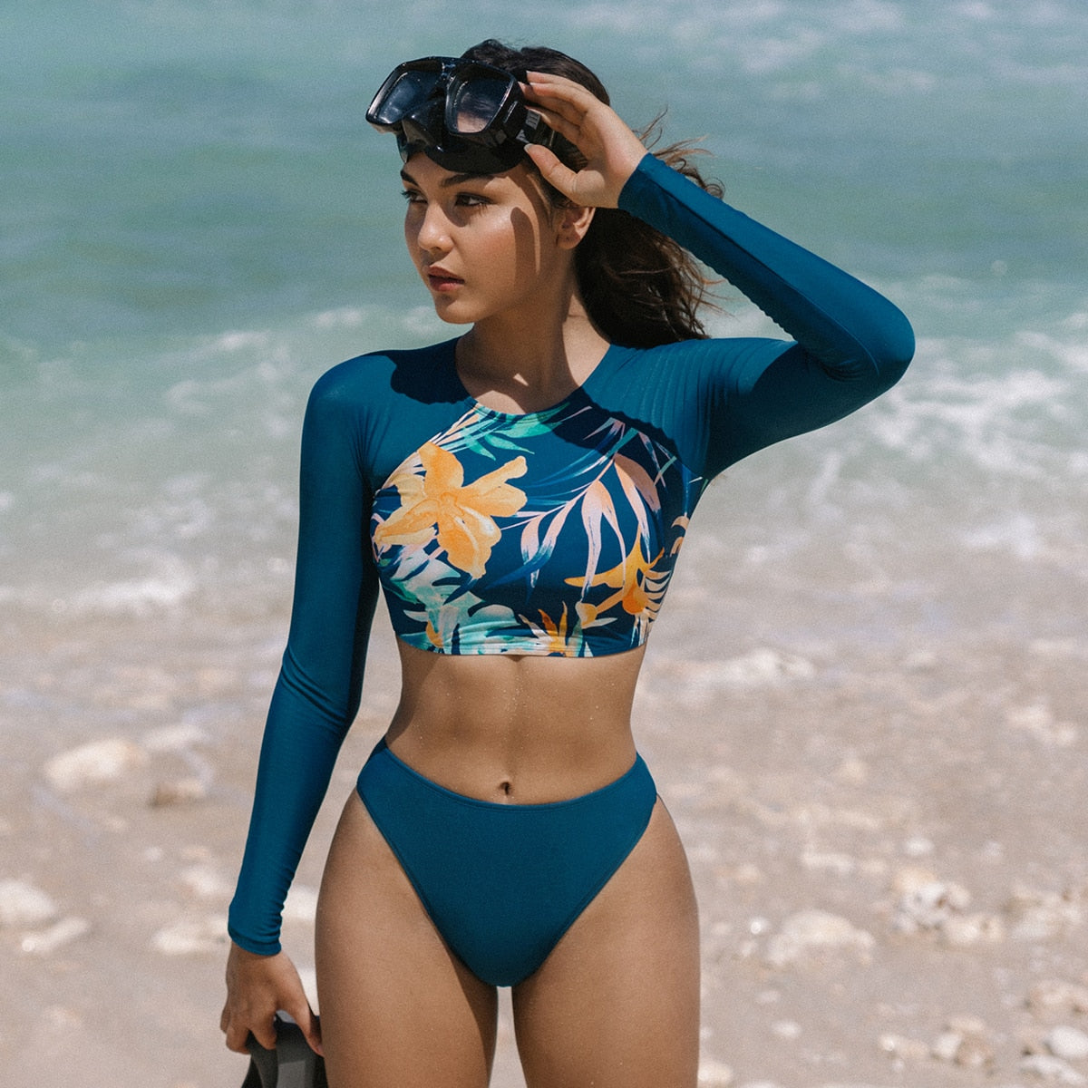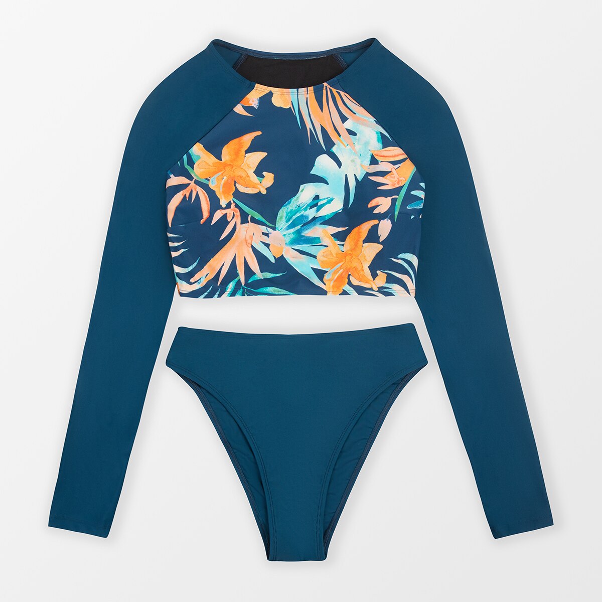 Bikini Manga Larga Portofino Escape Rashguard Crop Top - Cintura Media