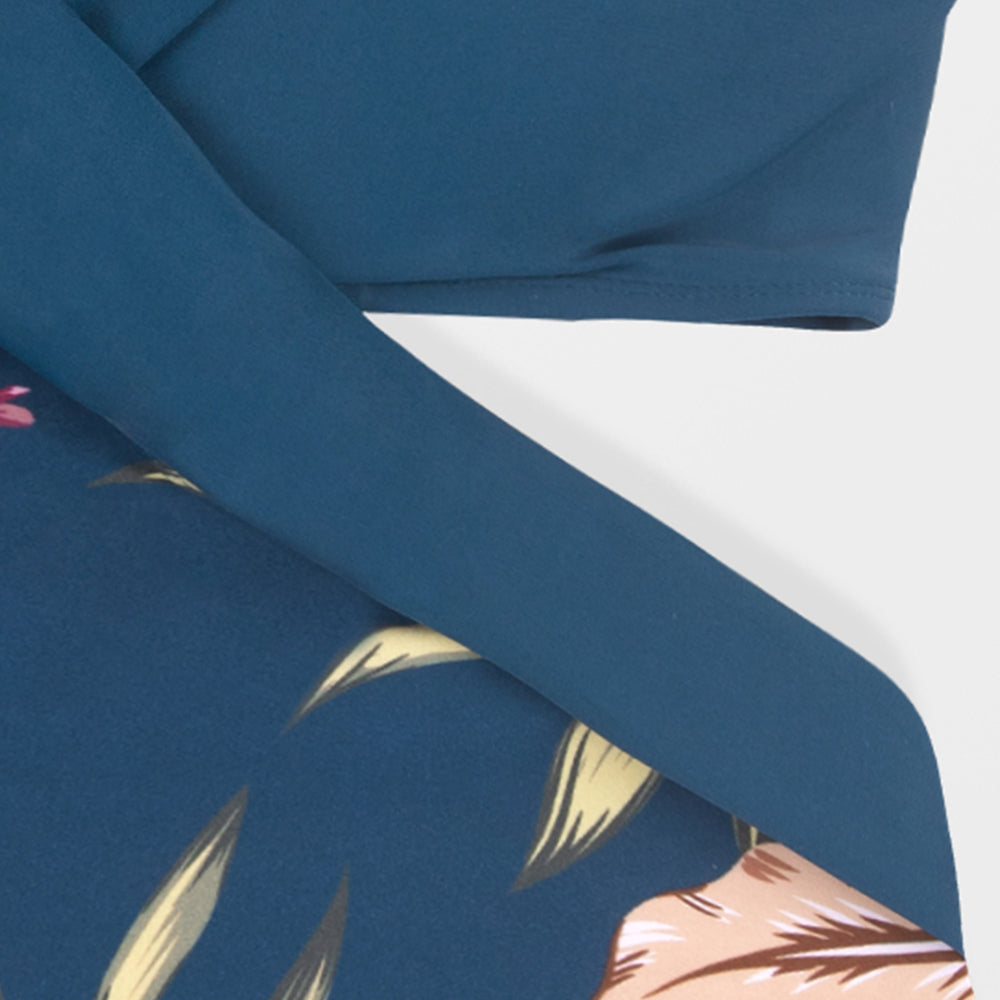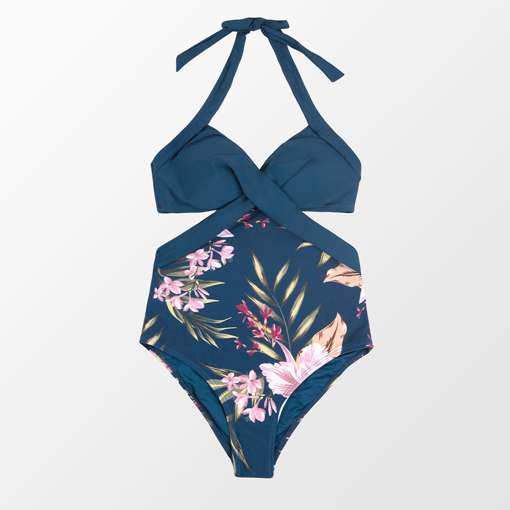 Traje de Baño Wrap Front Cutout Azul Floral - Una Pieza