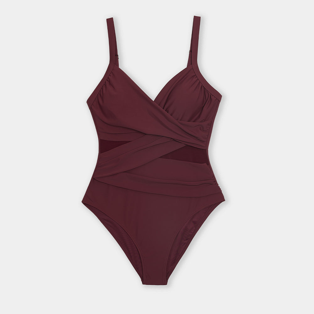 Traje de Baño con Corte Frontal Cruzado de Malla Sólida - Una Pieza