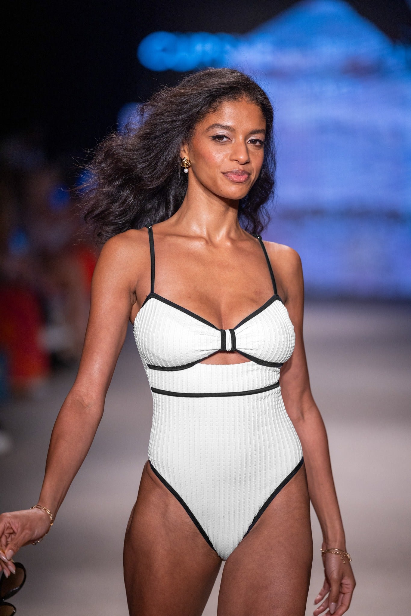 Presentamos nuestro traje de baño de una pieza con ribetes anudados y aberturas Coastal Rib, una incorporación elegante a tu colección de ropa de playa. Con su intrincada textura acanalada, detalles anudados y ribetes elegantes, este traje de baño irradia encanto moderno y estilo informal.