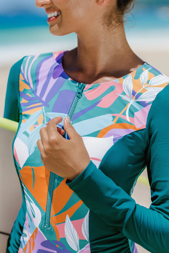 Traje de Baño Manga Larga con Cremallera y Estampado Tropical Sensorial Spring - Una Pieza