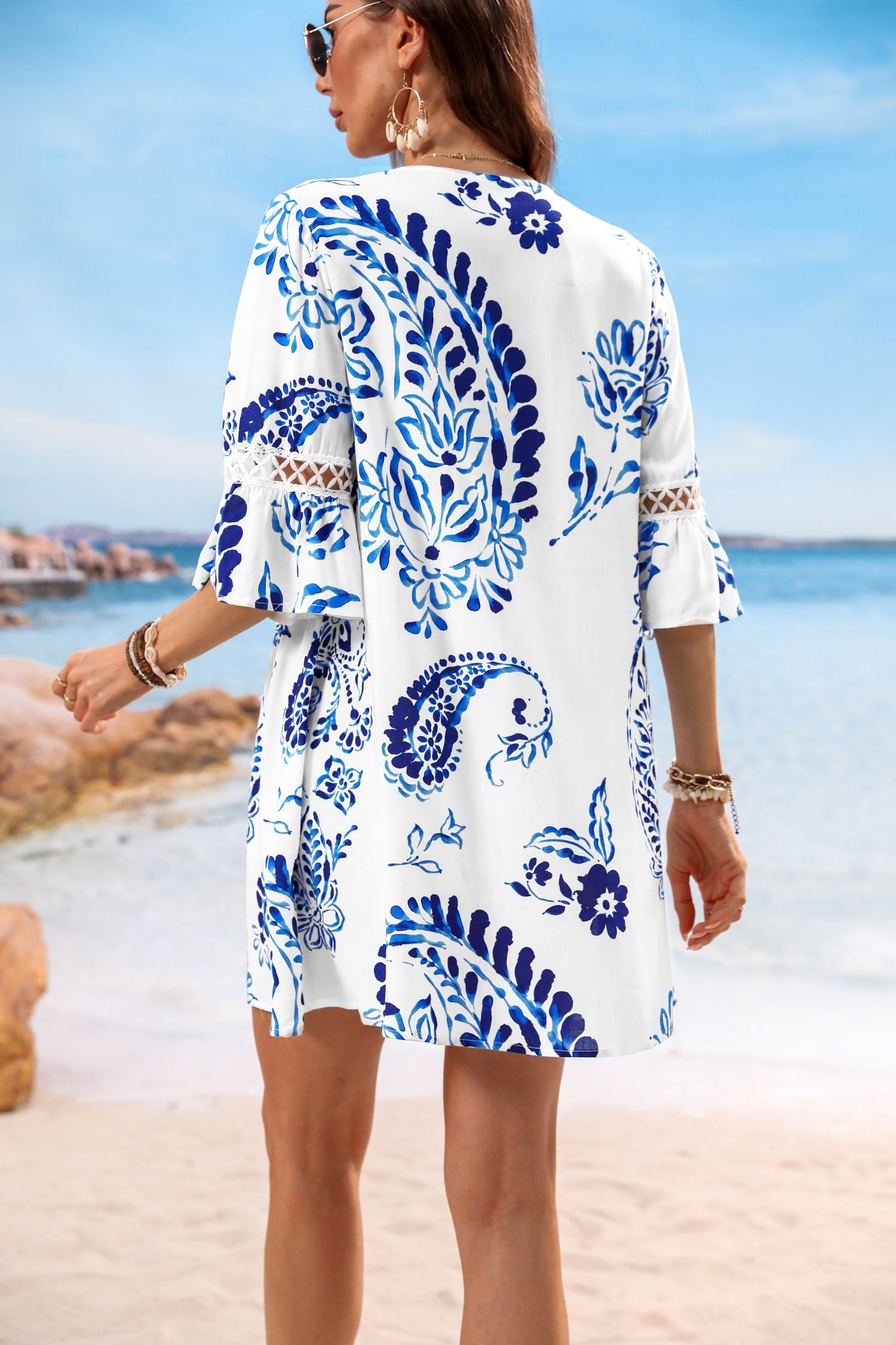 Vestido de Encaje con Estampado Floral de Cachemira - Santorini